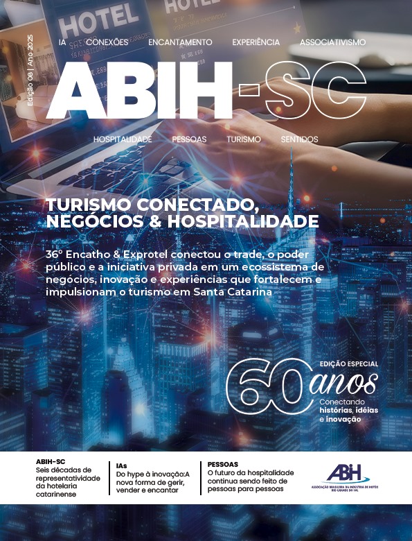 A programação marcou também o lançamento oficial da 8ª edição da Revista ABIH-SC, dedicada aos 60 anos da entidade, com registro histórico, linha do tempo, depoimentos, coberturas do Encatho & Exprotel 2025, além da lista de meios de hospedagem associados à ABIH-SC, fornecedores da hotelaria, personalidades que pessaram pelo evento e muito mais. Para conferir a versão digital, clique aqui!